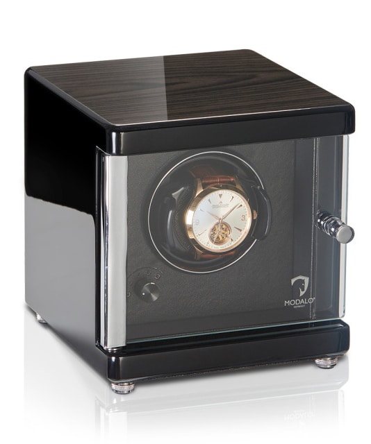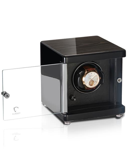 Den klassiska formen i kombination med de omsorgsfullt utarbetade detaljerna gör den nya AMBIENTE till en mycket dekorativ uppdragare som sätter klockorna i rampljuset i varje rum. Det välbyggda kabinettet är gjord av massivt nya zeeländskt trä, som tillsammans med den stora glasluckan erbjuder en skyddande och stilfull förvaringsplats för dina värdefulla armbandsur. Fast viloläge vid ”kl 12” bidrar till att framhäva klockorna ur dess bästa betraktningsläge.