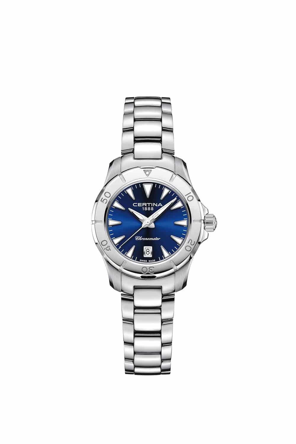 Denna feminina modell med sin fina diameter på 29 mm är i en klass för sig. En COSC-certifierad klocka som sticker ut med sin pålitliga precision. Dess stabila design och förbättrade vattentäthet gör denna sportiga, eleganta klocka till den perfekta följeslagare för alla äventyr som livet tar dig med på.