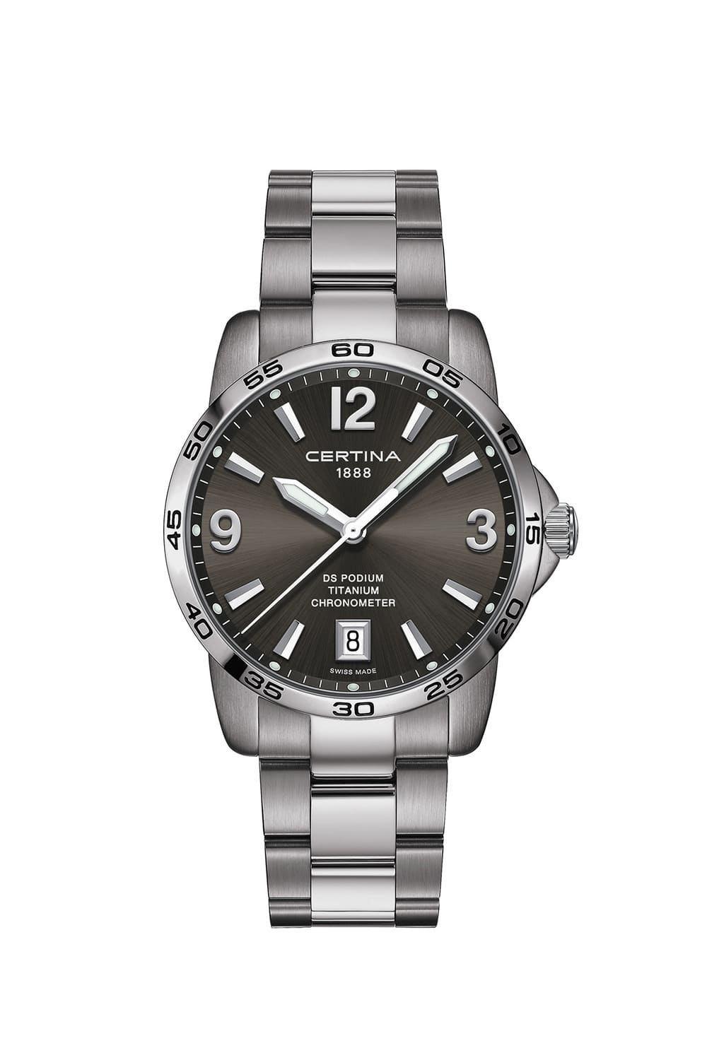 DS Podium 40 mm levererar din tid – med kronometerprecision. Den ovanligt tydliga urtavlan Super-LumiNova och ett datumfönster vid kl 6 ger dig överblick på ett ögonblick.