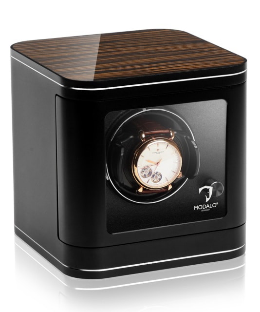 Modalo Estate är en exklusiv uppdragare, eller watch winder, för en klocka. Uppdragarens rotation håller ditt armbandsur med automatiskt urverk uppdraget och ser till så att klockan alltid är redo att användas. Den drivs av medföljande nätadapter eller batterier.