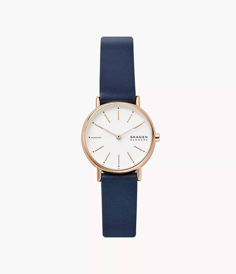 Skagen Signatur Lille Two-Hand Ocean Blue Leather Watch