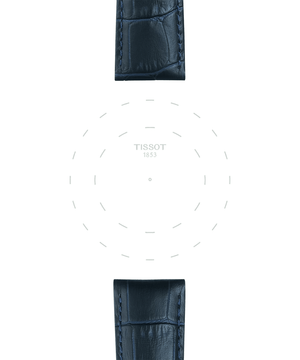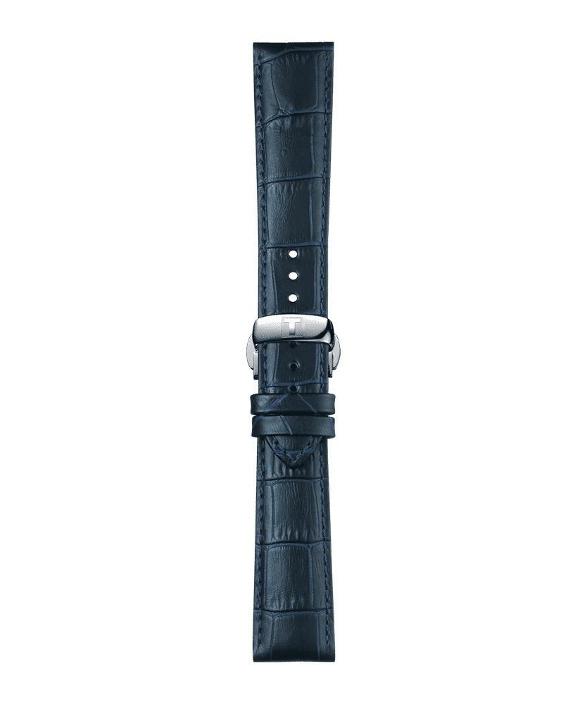 Original blå läderrem med butterfly-spänne med tryckknapp. Remmen har snabbt och enkelt utbytbart fäste. Kompatibel med bland annat Tissot Gentleman.
